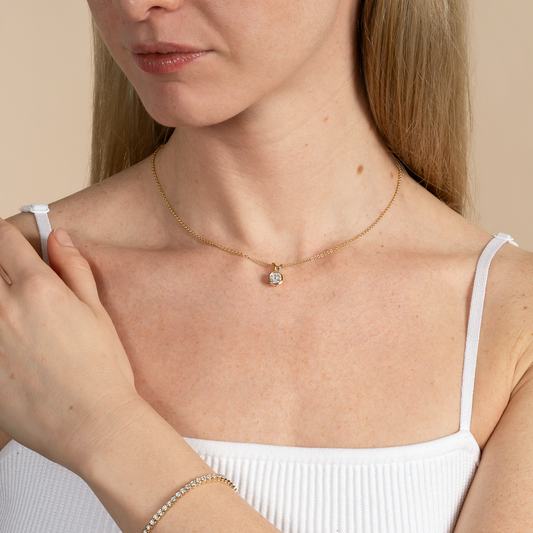 Bezel Set Lab Grown Diamond Solitaire 16 Inch Necklace, and Bracelet Set