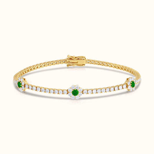 Lab Grown Diamond Tennis Bracelet with Emerald Centered Flower Clusters