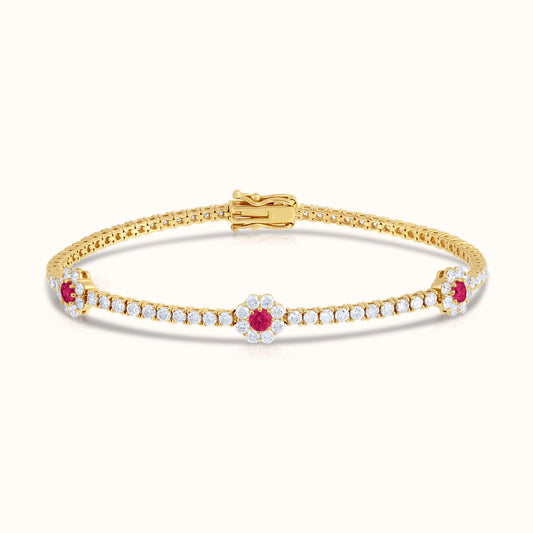 Lab Grown Diamond Tennis Bracelet with Ruby Centered Flower Clusters