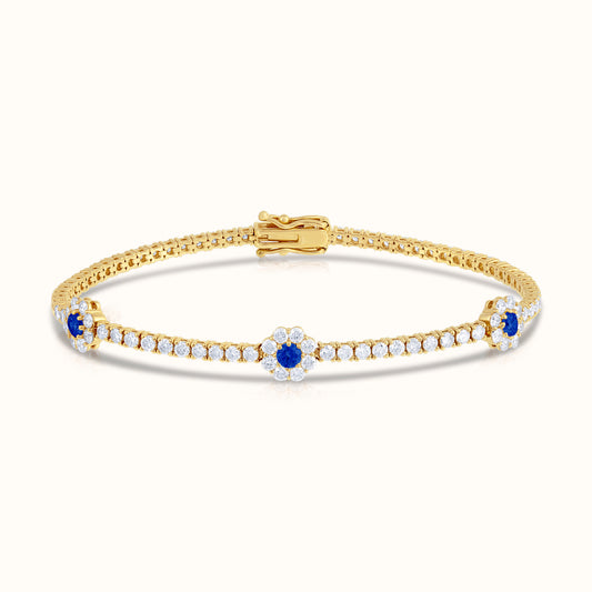 Lab Grown Diamond Tennis Bracelet with Sapphire Centered Flower Clusters