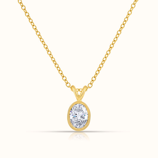 Bezel Set IGI Certified Lab Grown Diamond Oval Cut Pendant Necklace
