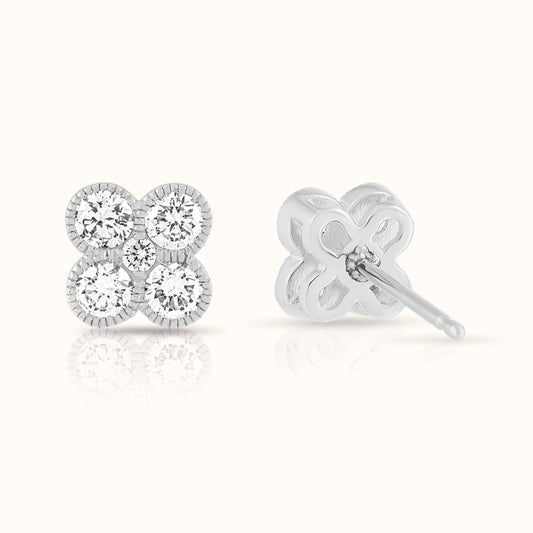 Flower Clover Beaded Lab Grown Diamond Stud Earring
