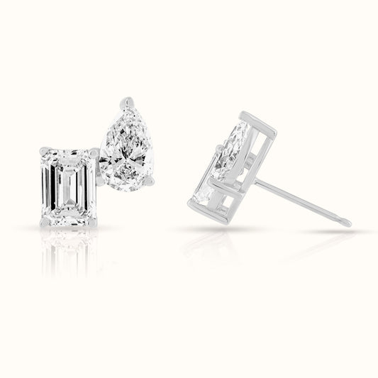 Toi Et Moi Lab Grown Emerald and Pear Diamond Stud Earring