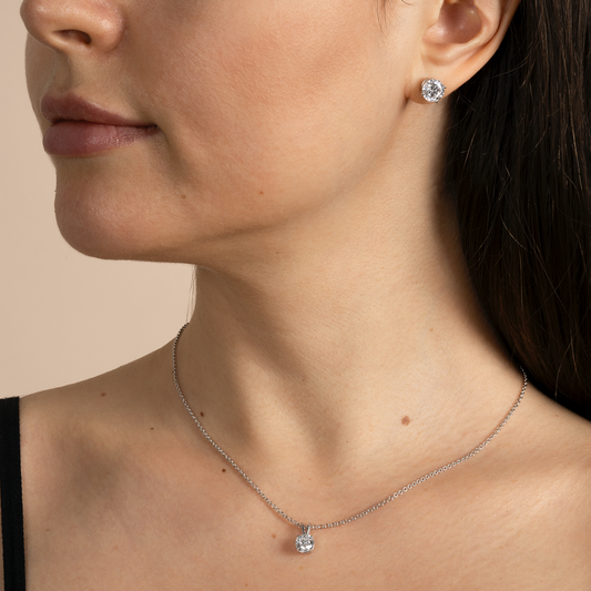 4 Prong Lab Grown Diamond Solitaire 16 Inch Necklace, Studs and Bracelet Set