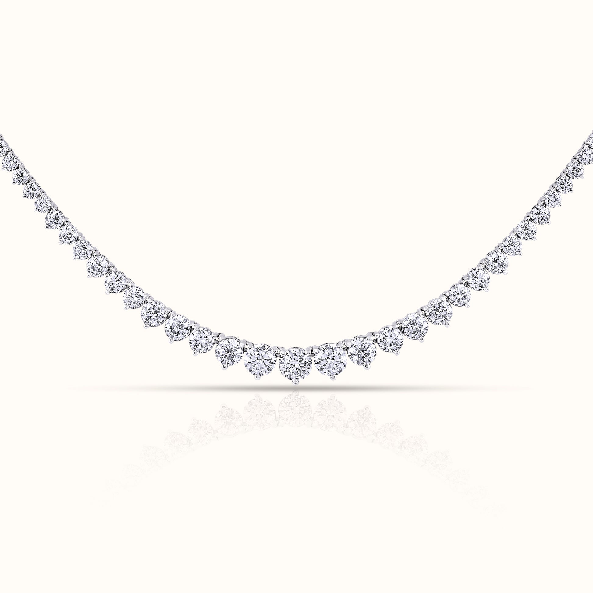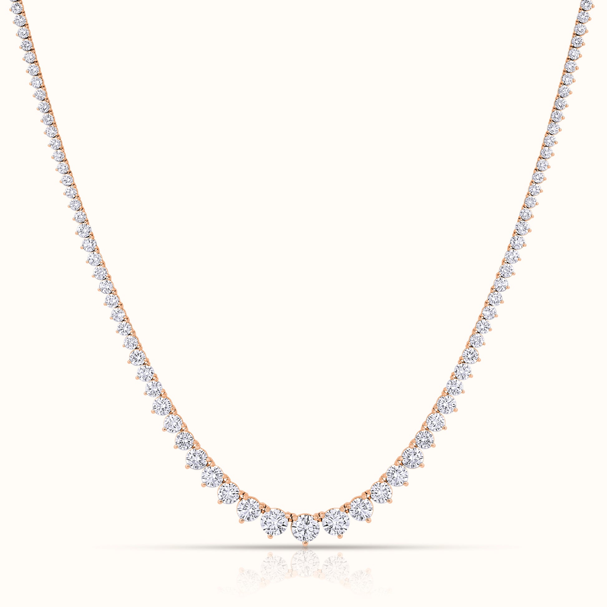 Elevate your elegance with this 3 Prong Graduated Diamond Tennis Necklace. Featuring perfectly matched diamonds that increase in size toward the center, each stone is set to maximize brilliance and sparkle. Timeless and sophisticated, this necklace is a statement of luxury, perfect for special occasions or everyday refinement.