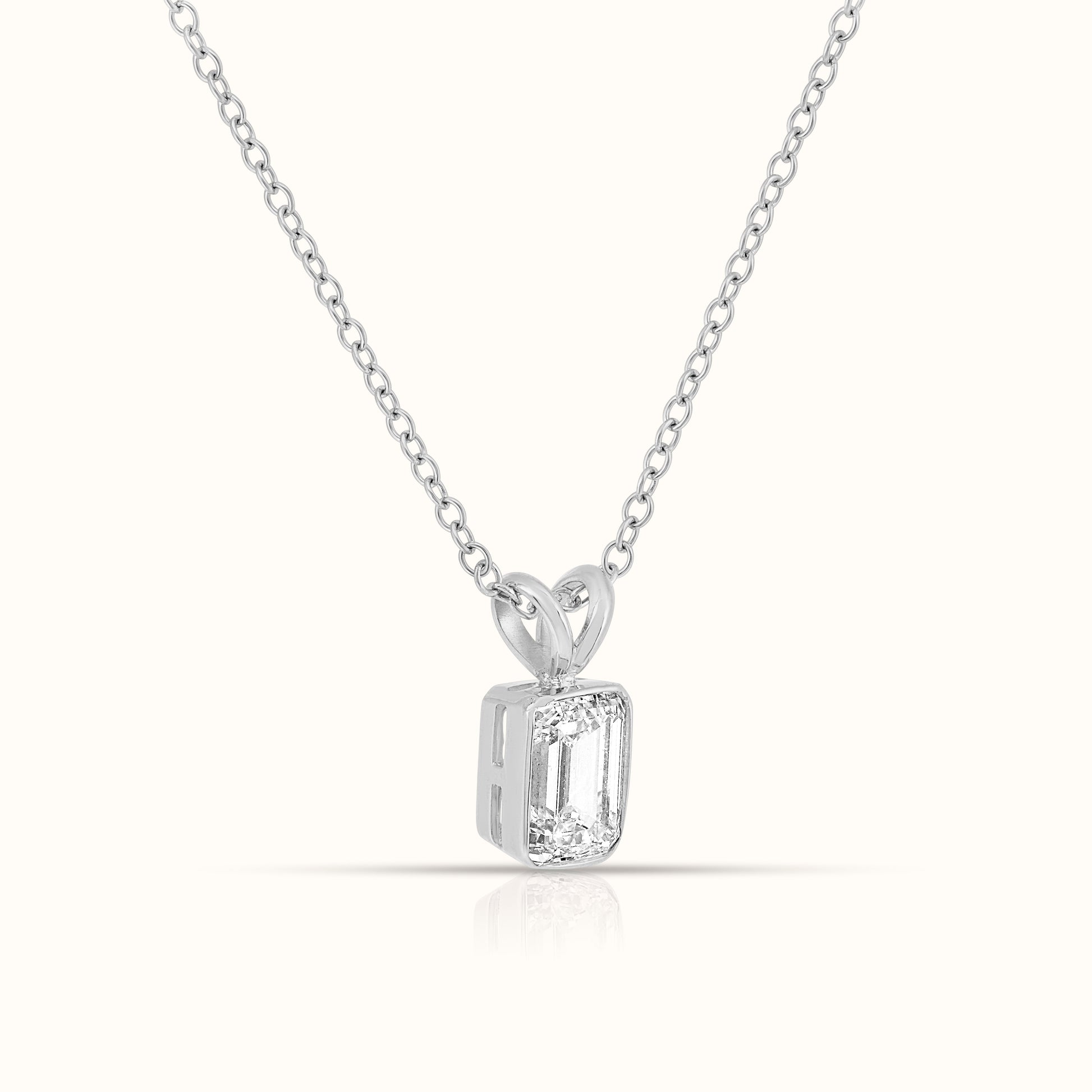Bezel Set IGI Certified Lab Grown Diamond Emerald Cut Pendant Necklace