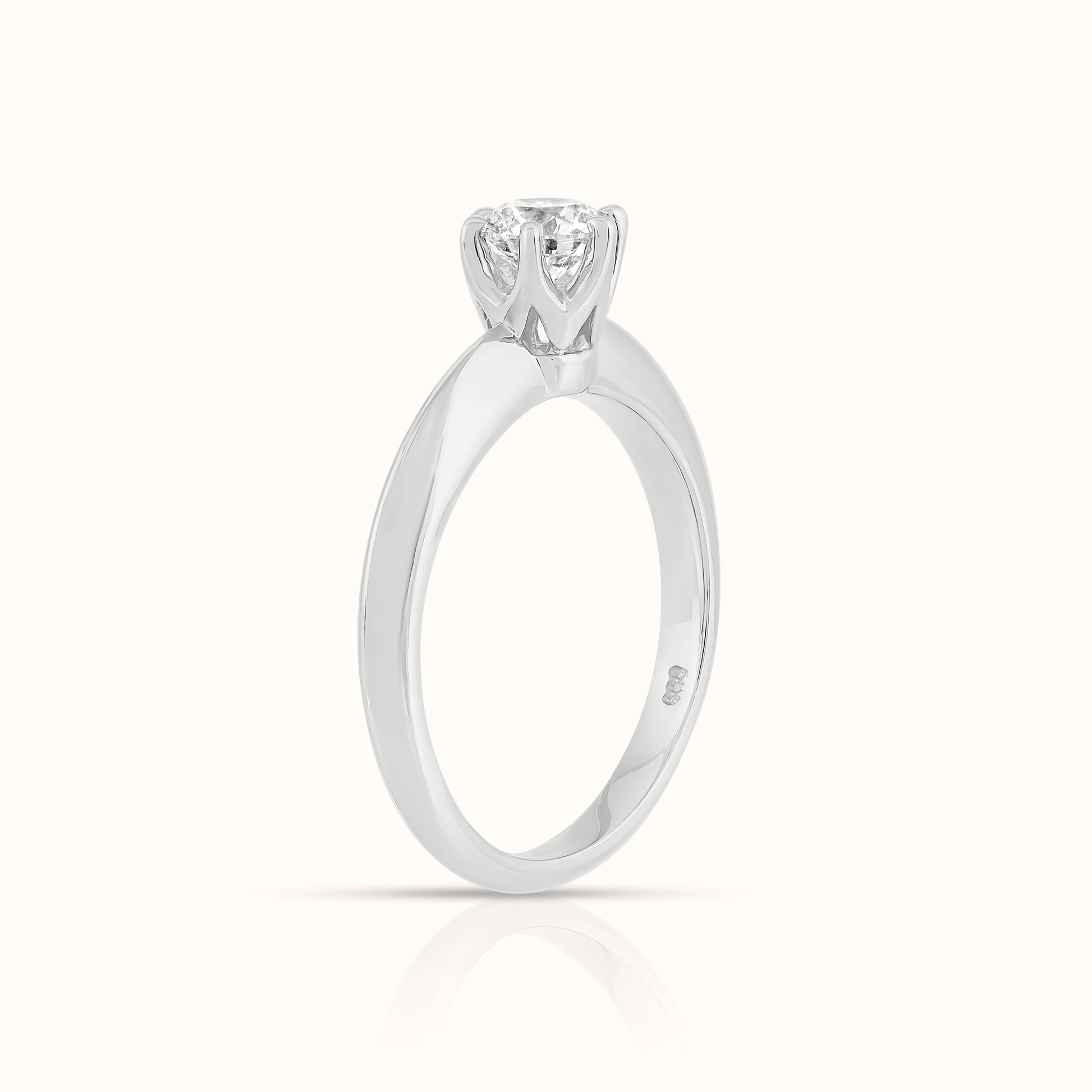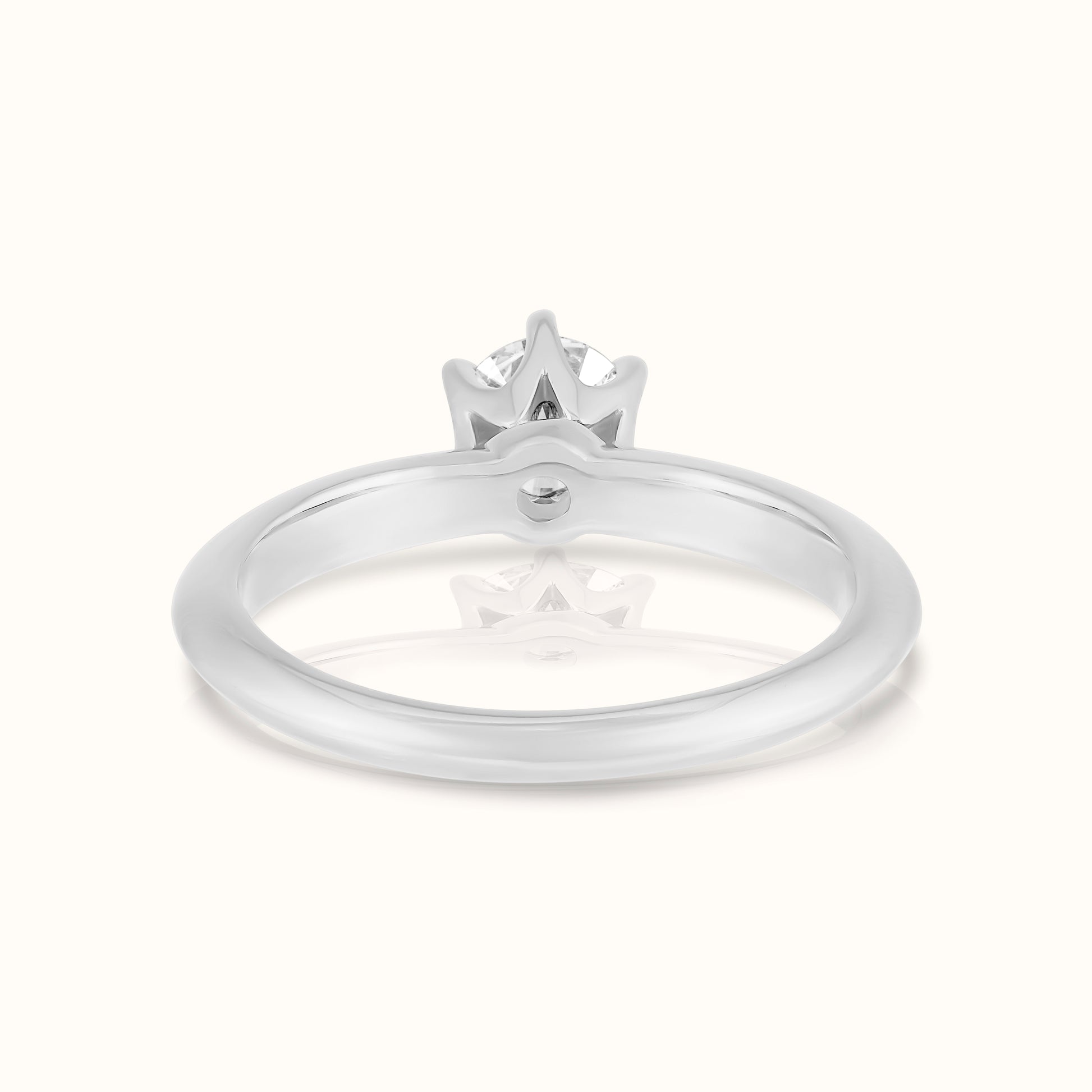 Timeless and elegant, this ring features a round lab-grown diamond held securely in a classic six-prong setting. Designed to showcase the stone’s brilliance from every angle, its refined silhouette offers a sophisticated, enduring look that’s perfect for a lifetime of love.