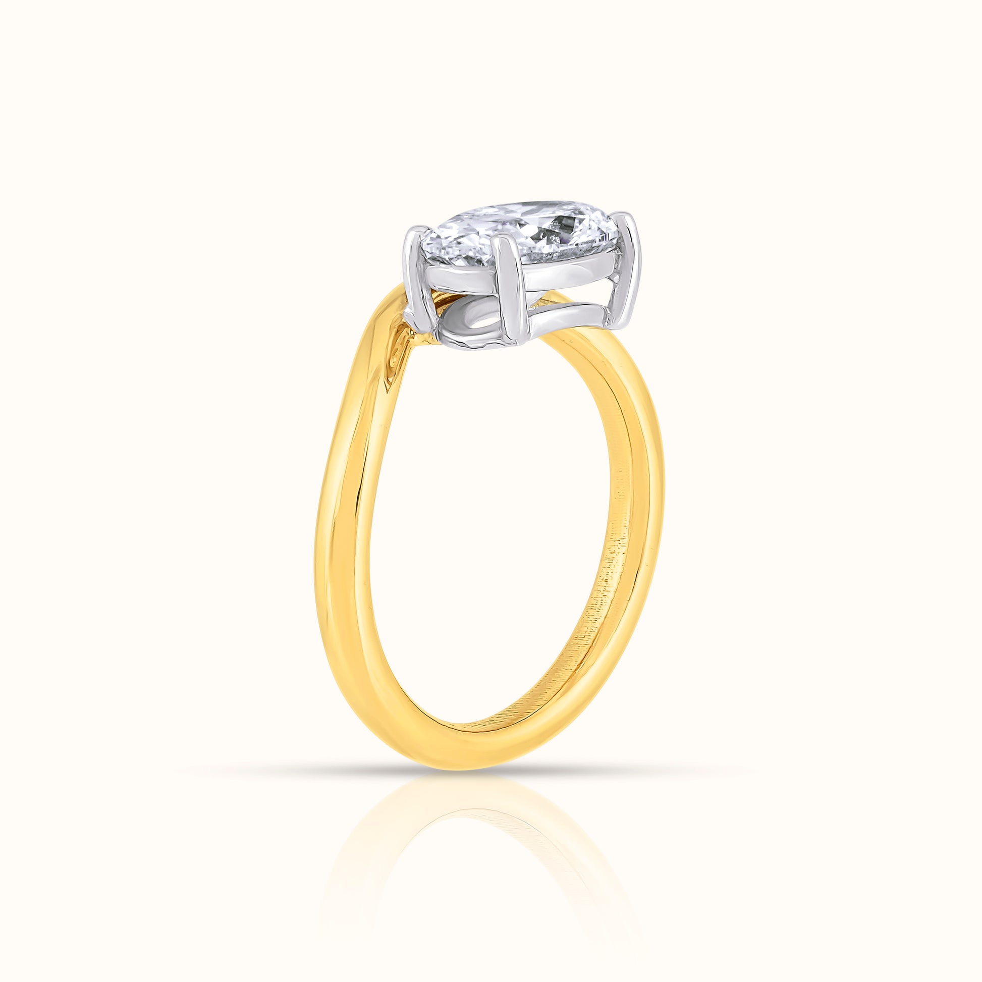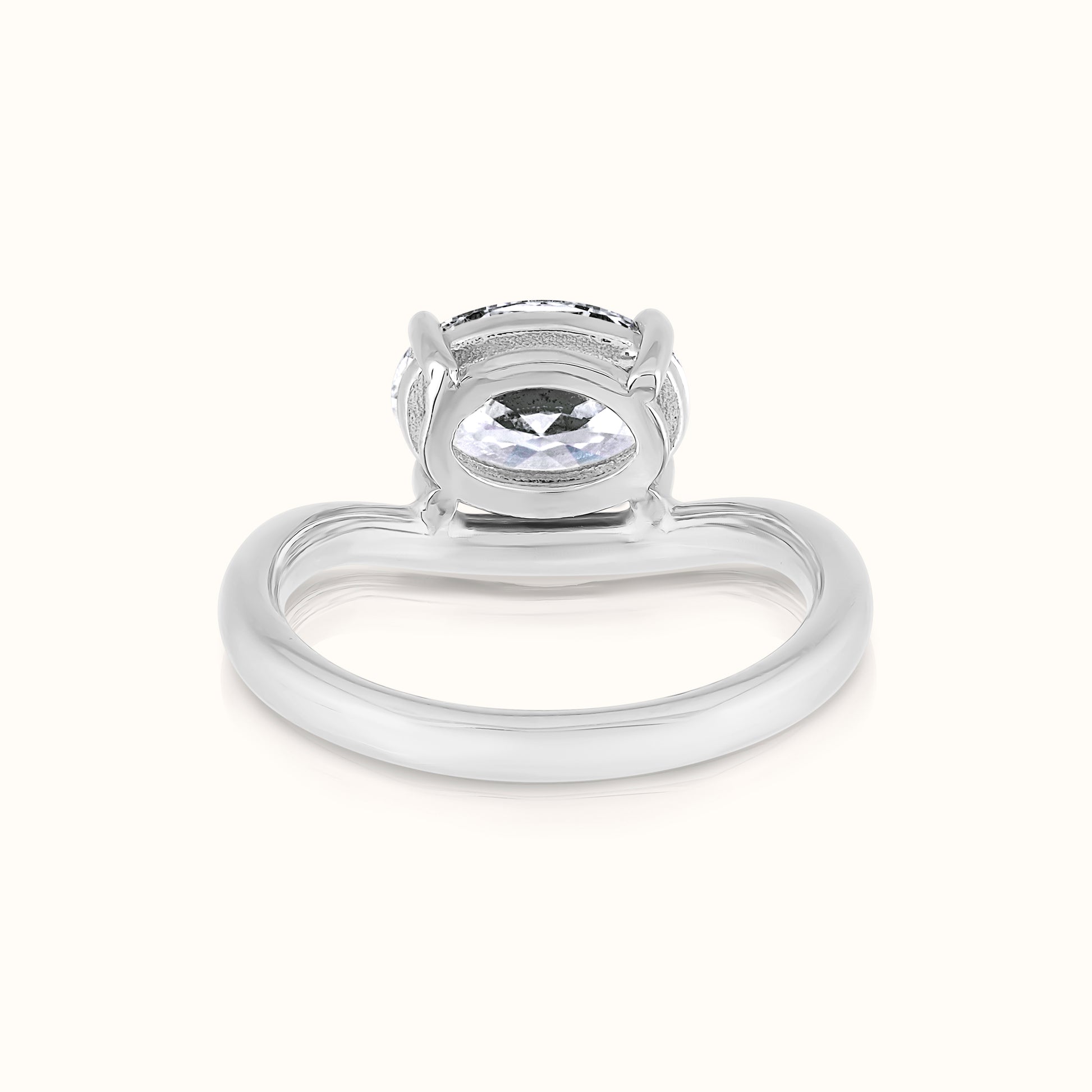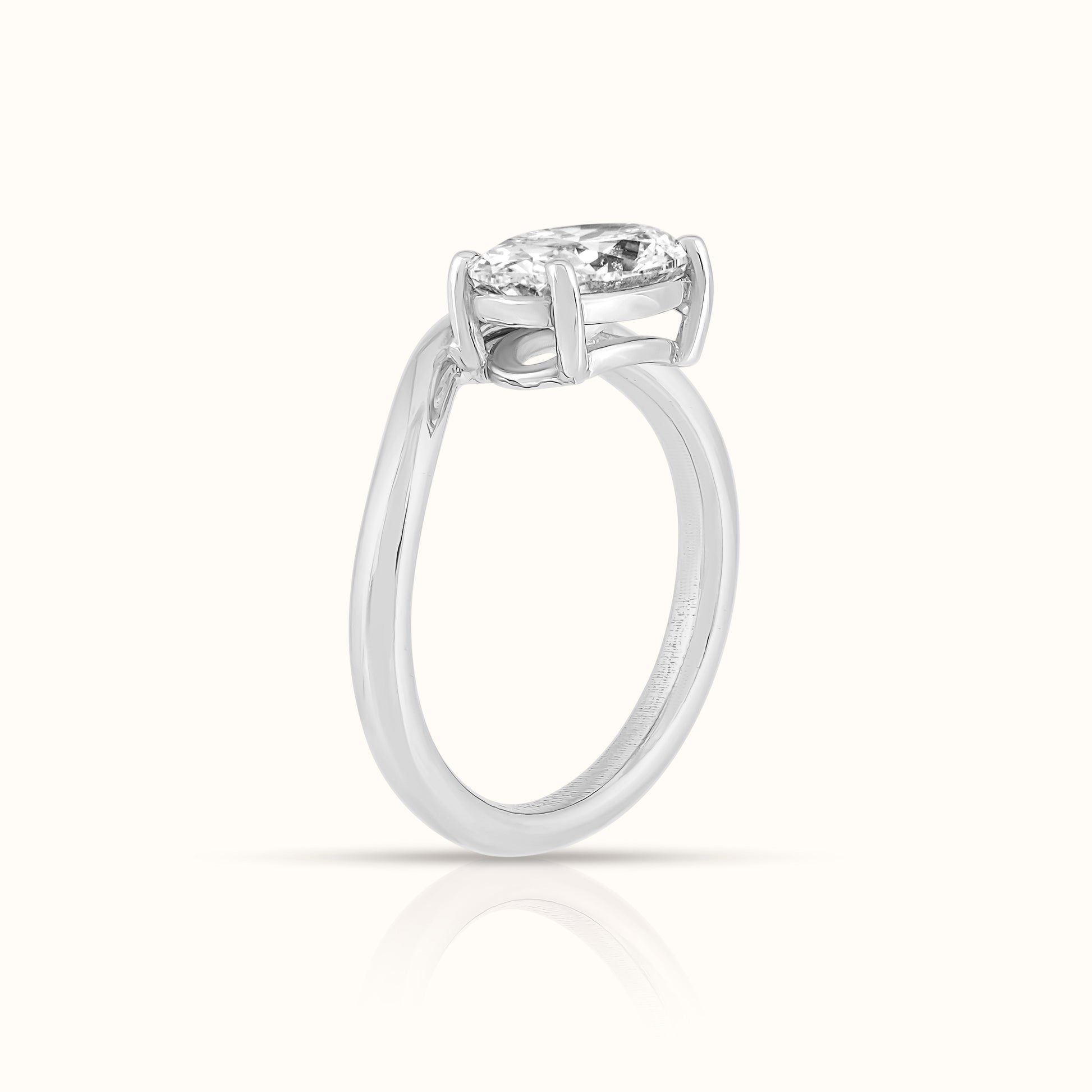 A modern twist on classic elegance, this ring features an oval lab-grown diamond set east-west, floating above a wavy band for a contemporary, sculptural look. Its distinctive design draws the eye, making it a standout piece that blends artistry with understated sophistication.