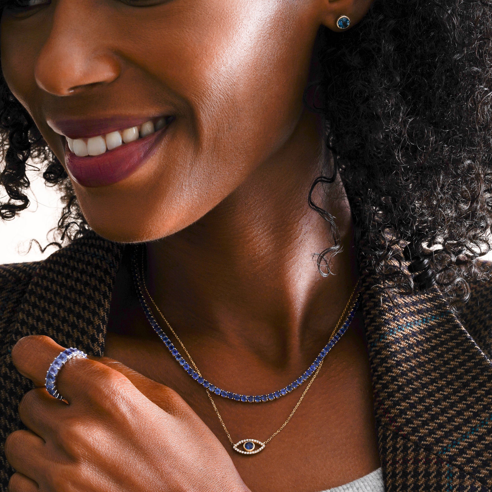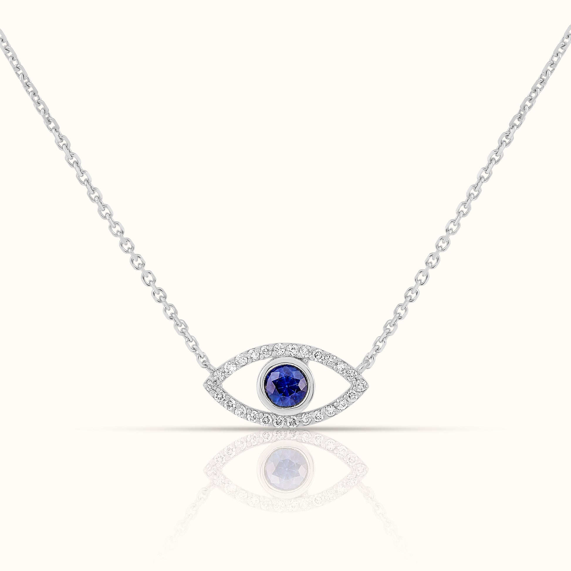 This evil eye pendant centers a deep blue sapphire, surrounded by glimmering lab-grown diamonds that catch the light with every movement. Wear it as a symbol of protection, intention, and effortless style. An everyday charm with modern sophistication.