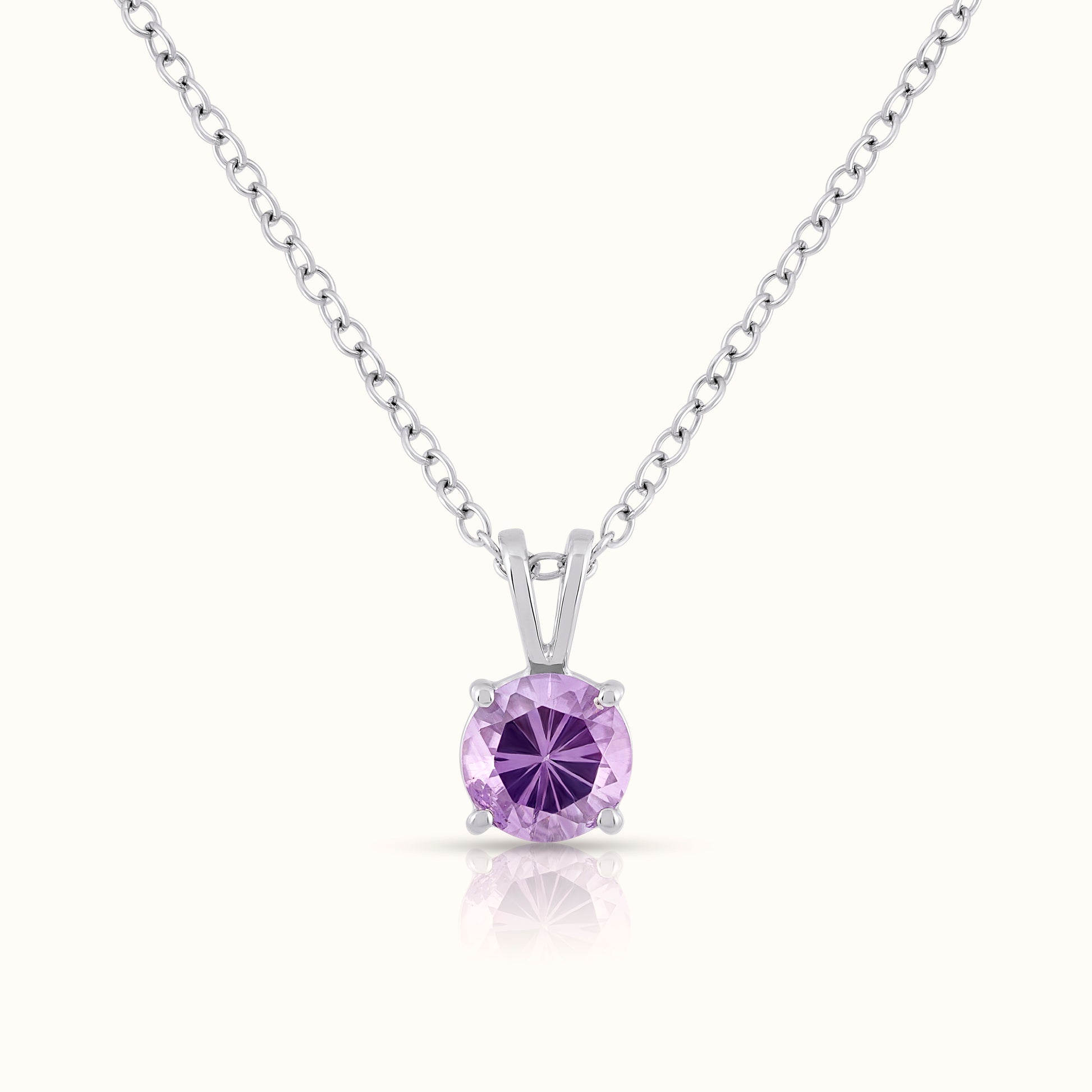 Celebrate the February birthstone with this 1-Carat Amethyst Solitaire Pendant. Set in a classic 4-prong design, its vibrant purple hue offers a playful yet elegant pop of color, combining fun, modern charm with timeless luxury—a sparkling addition to any jewelry collection.
