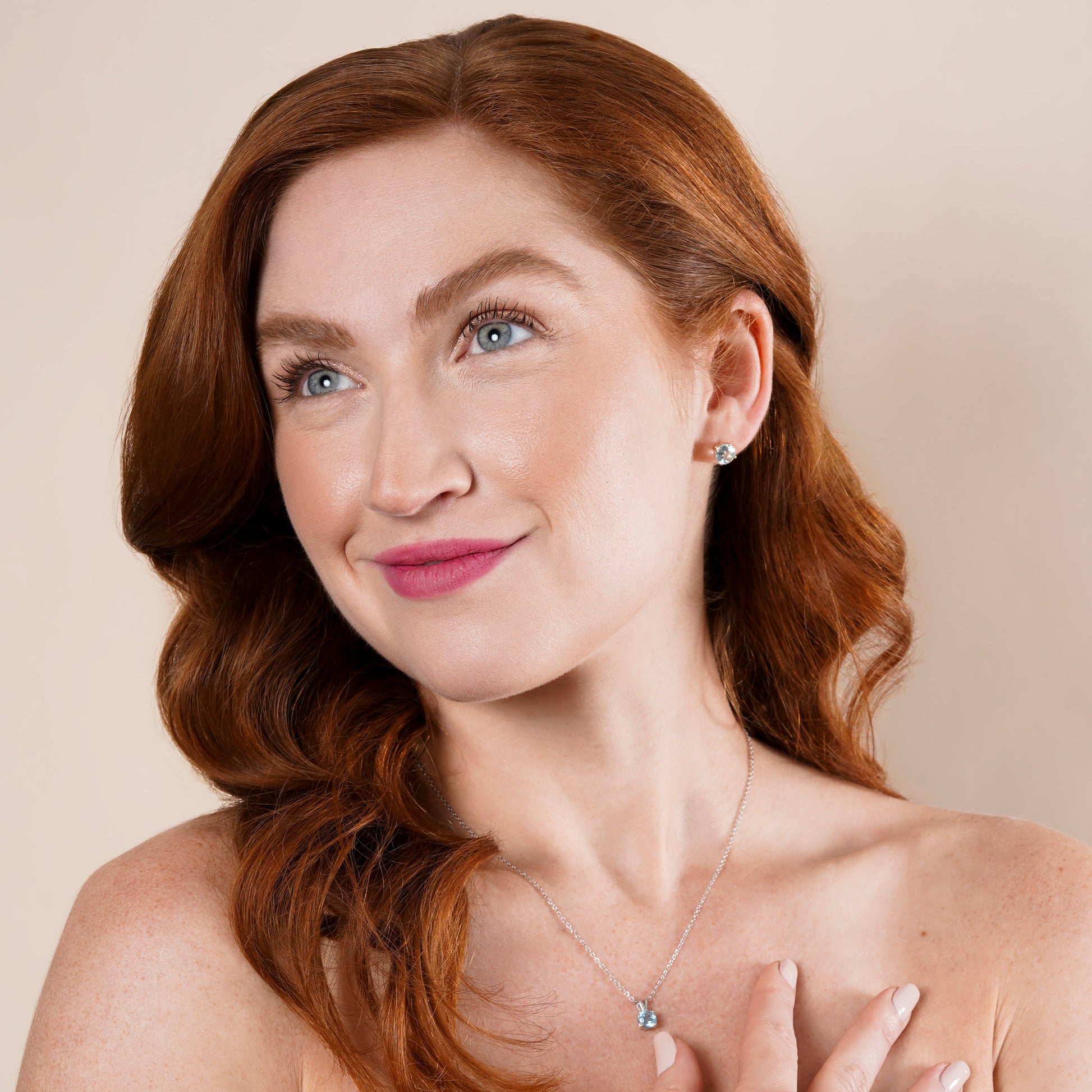 Celebrate the March birthstone with this 1-Carat Aquamarine Solitaire Pendant. Set in a classic 4-prong design, its serene blue hue adds a playful yet elegant pop of color, blending modern charm with timeless luxury—a sparkling statement piece for any jewelry collection.