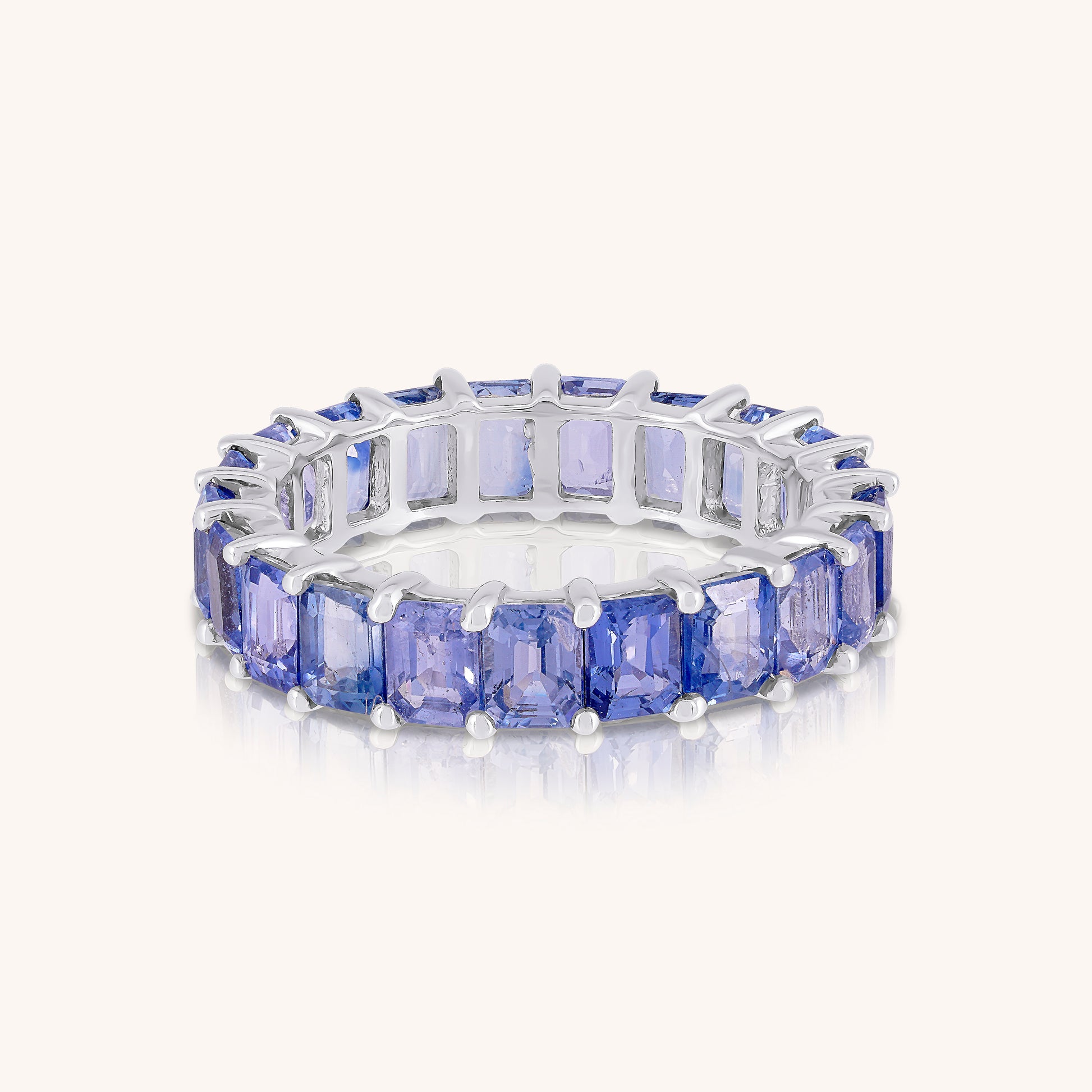 Natural Blue Sapphire Emerald Cut Eternity Ring