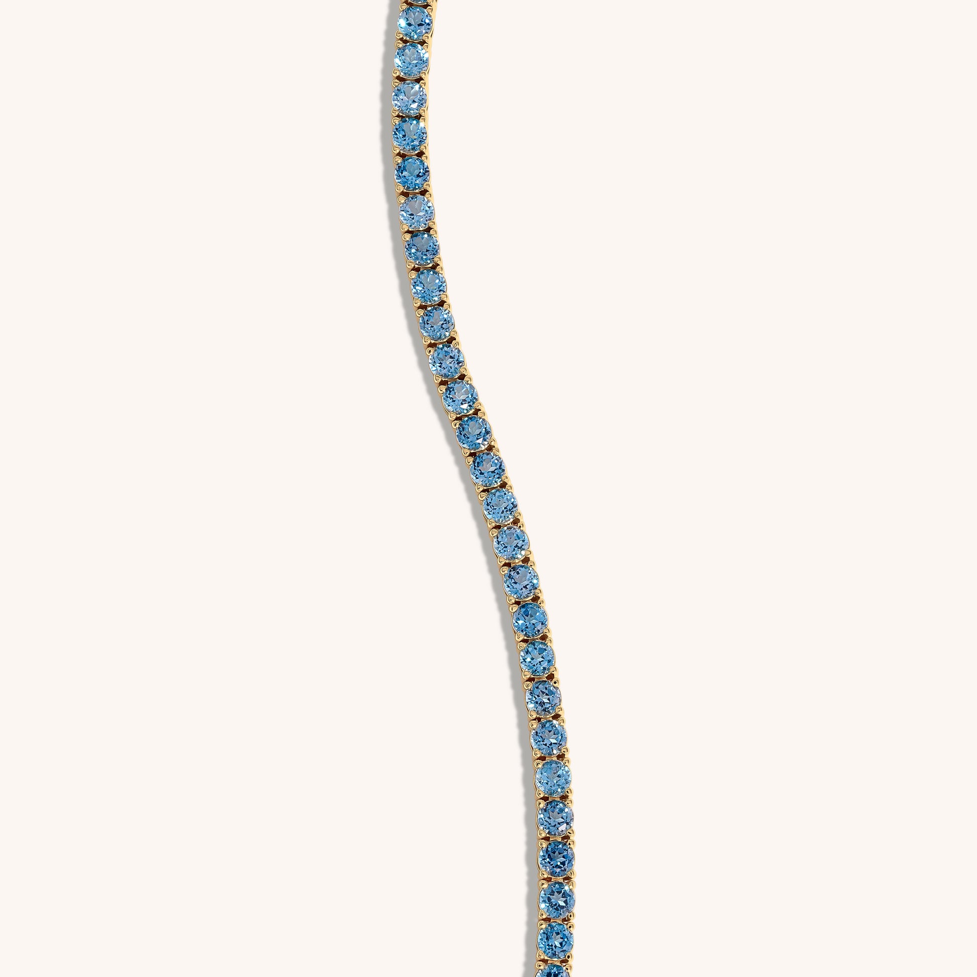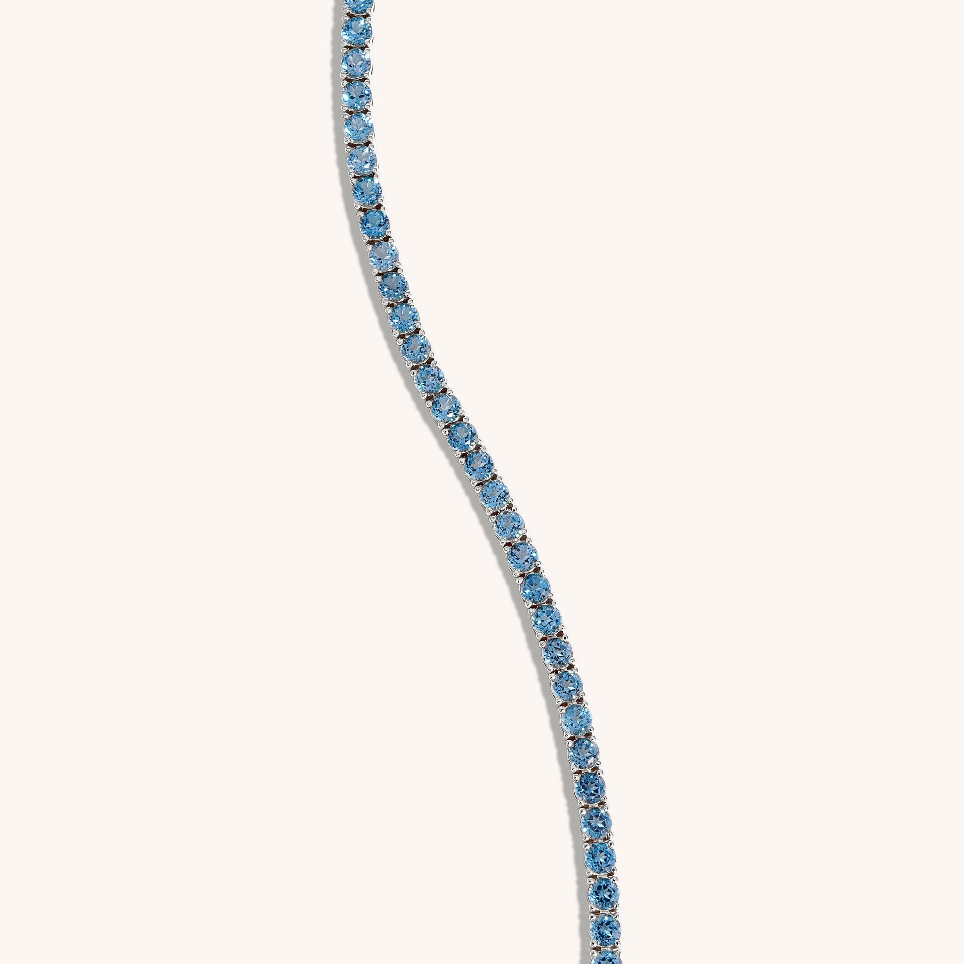 Brilliant natural blue topaz stones shine in a classic tennis bracelet design, bringing cool sophistication to any occasion! Wear it solo for understated charm or layer with bangles for a polished evening look.