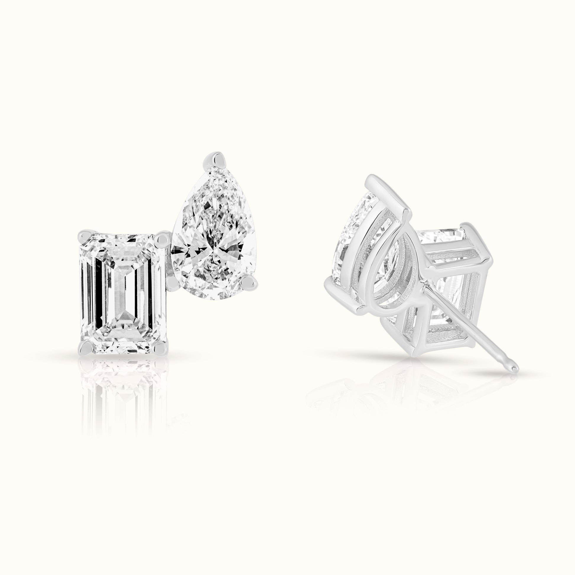 Toi Et Moi Lab Grown Emerald and Pear Diamond Stud Earring