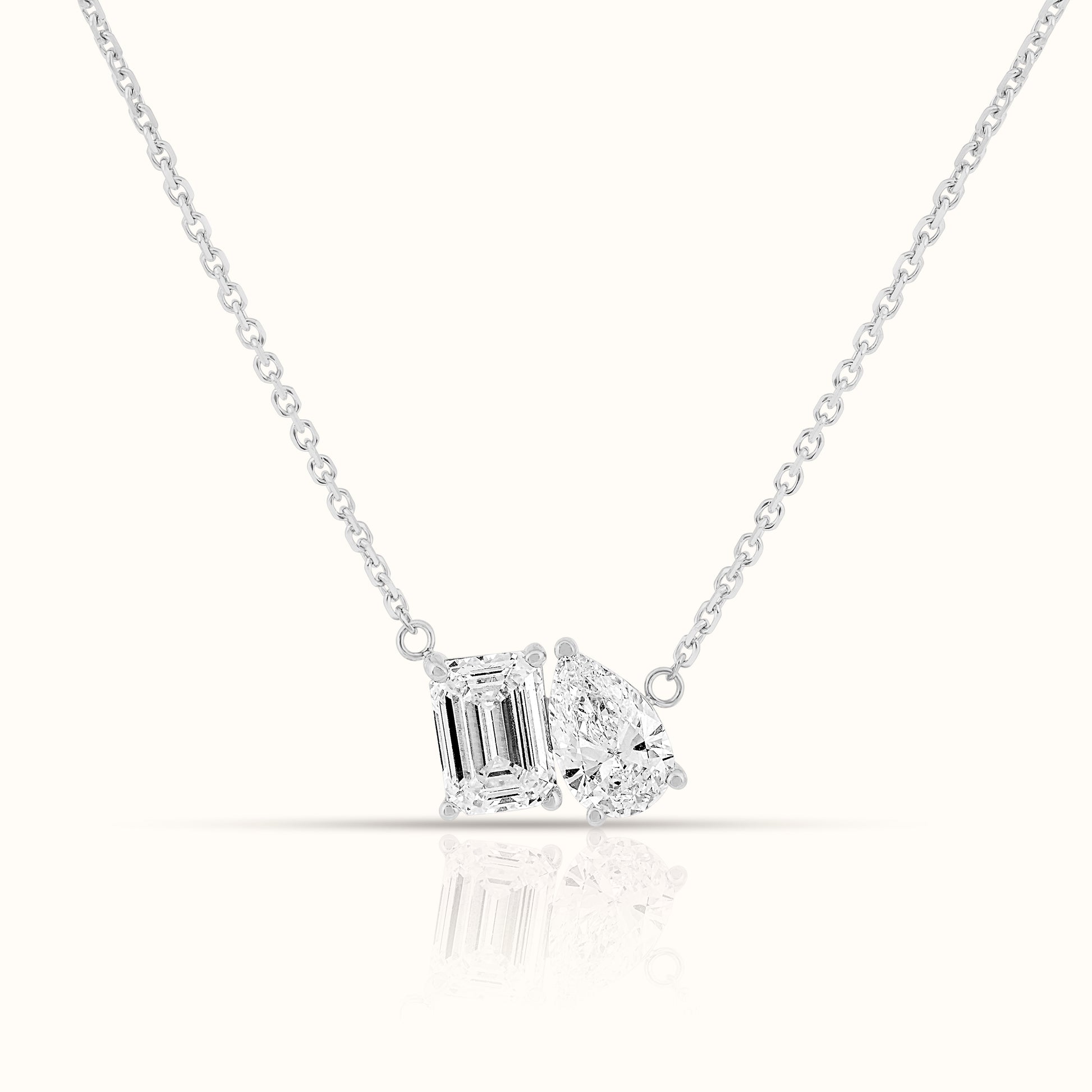 Toi et Moi Pear and Emerald Lab Grown Diamond Necklace