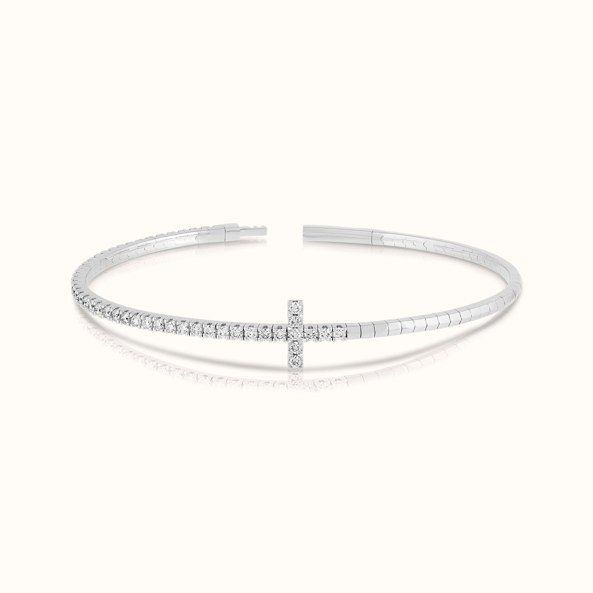 Two Tone Half Lab Grown Diamond Cross Flexible Bangle